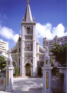 前金區最重要的古蹟是愛河橋畔的天主教玫瑰堂,俗稱前金天主堂