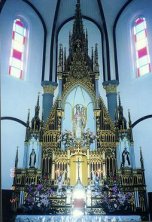 玫瑰聖母本堂祭台正中央所供奉的玫瑰聖母像,自西班牙引進,供奉至今已近一百四十年的歷史。